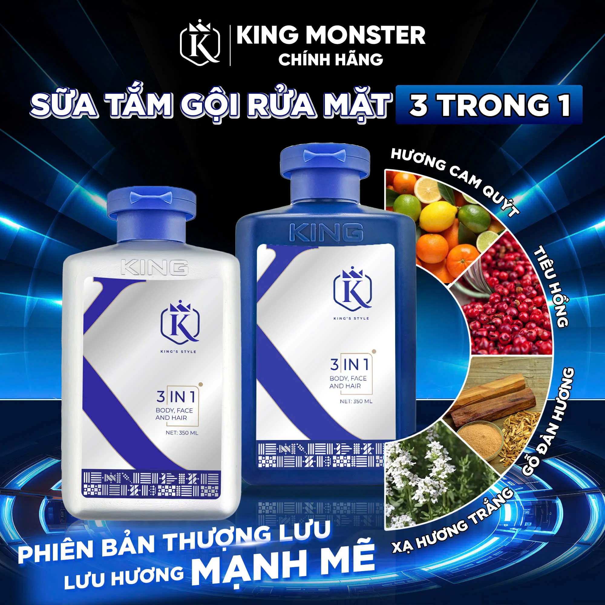 1. Thành phần và công dụng sữa tắm nam 3in1 KING MONSTER phiên bản Thượng Lưu